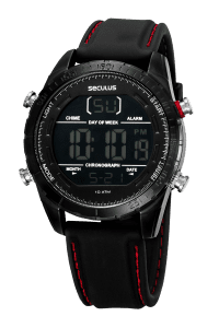 Homens de estilo não podem abrir mão de um relógio masculino como o Relógio Esportivo Silicone Preto. Estiloso, todo em preto, este relógio digital é esportivo e bastante confortável. Tem caixa em metal especial com botões acionadores nas laterais. A pulseira em silicone com pesponto vermelho traz um toque irresistível no design.