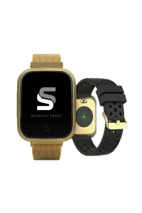 Mulheres estilosas também no dia a dia merecem ter um acessório como o Relógio Smartwatch Quadrado Dourado. É um smartwatch com visor fullscreen sensível ao toque. Oferece as seguintes funções: frequência cardíaca, contagem de calorias, notificações de mensagens e ligações, cronômetro, monitor de sono, controle de câmera e controle de música. O design contemporâneo exibe diversos mostradores. Outro diferencial é ser resistente à água. Acompanham duas pulseiras, uma esportiva de silicone com dupla injeção e uma em malha de aço com fecho magnético.